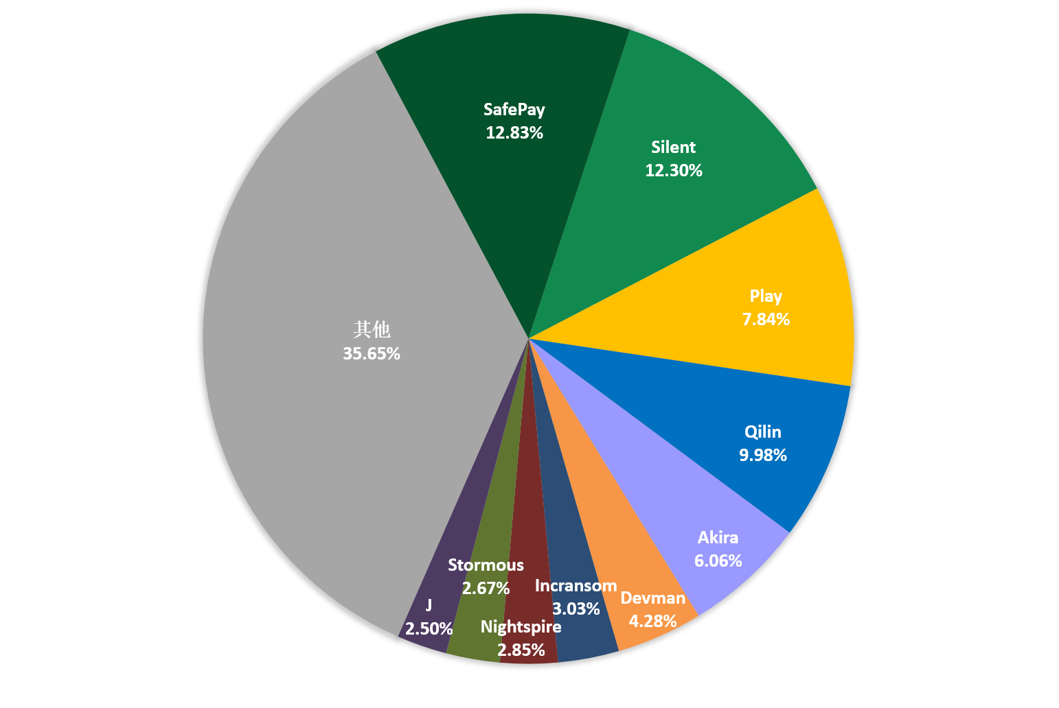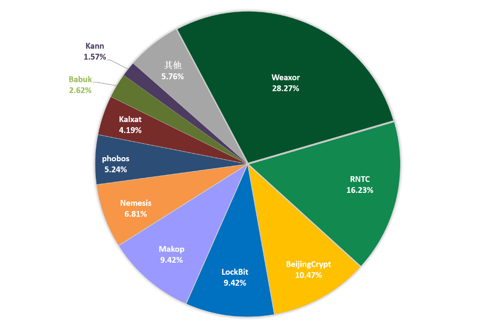 图1. 2025年5月勒索软件家族占比