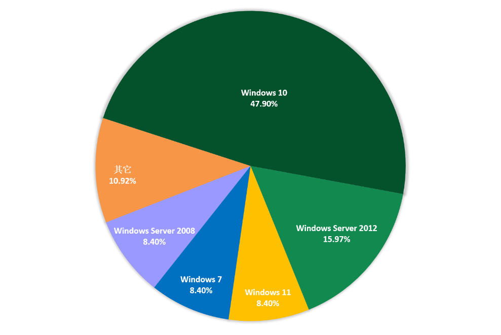 对本月受害者所使用的操作系统进行统计,位居前三的是:Windows 10、Windows Server 2012以及Windows 11。