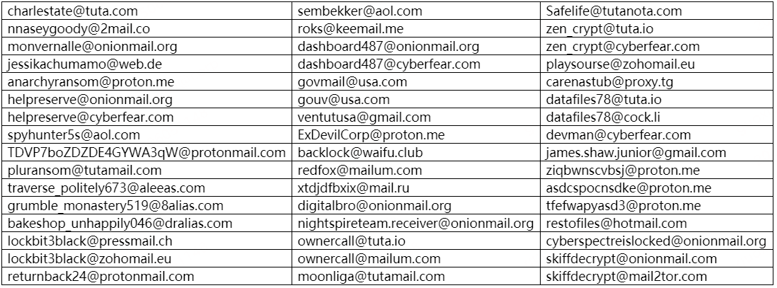 表1. 黑客邮箱