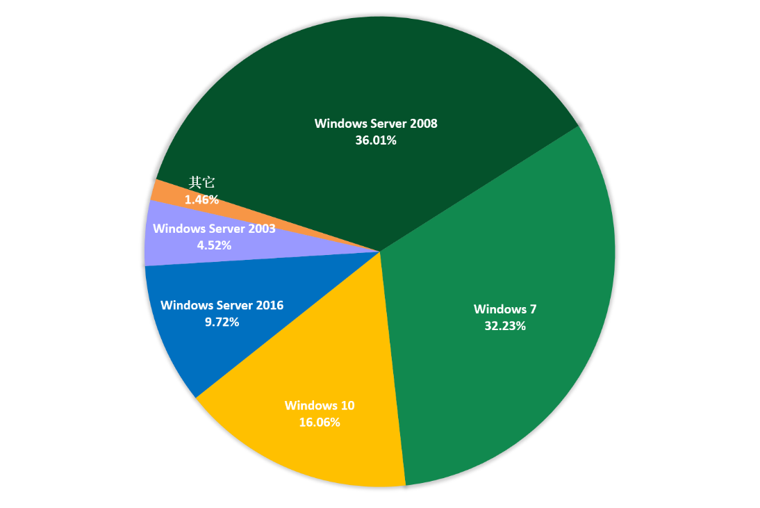 360系统安全产品,目前已加入黑客入侵防护功能。在本月被攻击的系统版本中,排行前三的依次为Windows Server 2008、Windows 7以及Windows 10。