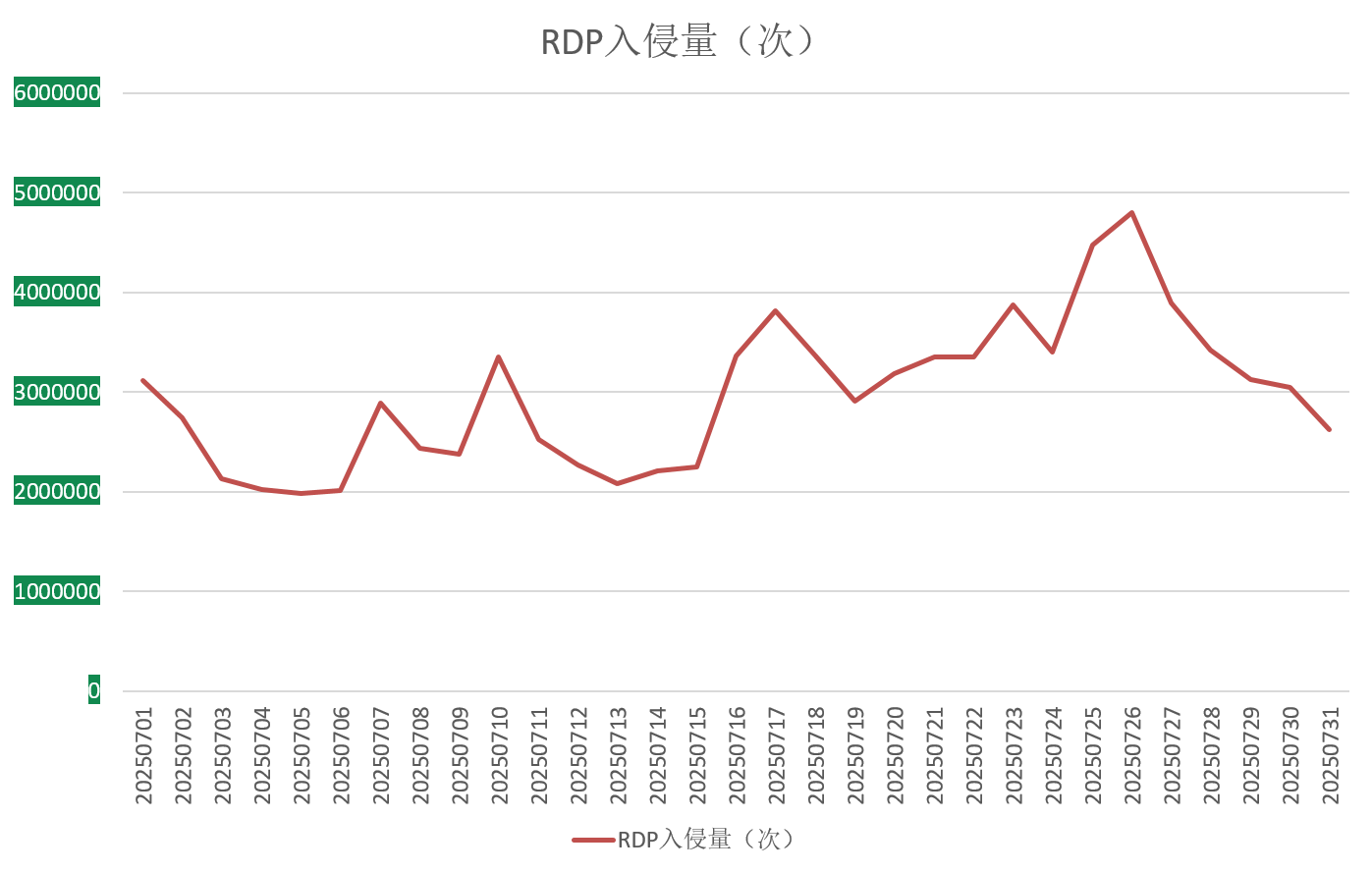 图7. 2025年7月监控到的RDP入侵量